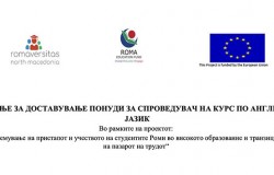 Здружението на граѓани „Ромаверзитас“ - Скопје во рамките на проектот: „Зголемување на пристапот и учеството на студентите Роми во високото образование и транзицијата на пазарот на трудот“, финансиран од Европска Унија и РЕФ, објавува повик за УЧЕСНИЦИ НА КУРС ПО АНГЛИСКИ ЈАЗИК.